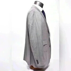 Fantastic quality from the venerable Italian house of Raffaele Caruso. Very fine wool cloth in a light grey herringbone pattern, size 46R, made in Italy
