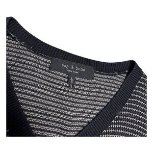 Crafted with a commitment to quality and style, the RAG & BONE Knit Luxury Designer Casual Waffle Thermal Sweater is a versatile addition to any modern man's wardrobe. This men's large pullover features a classic V-neck design and long sleeves, perfect for layering or wearing on its own during cooler seasons. Its waffle-knit pattern provides a distinctive texture that sets it apart from everyday sweaters.