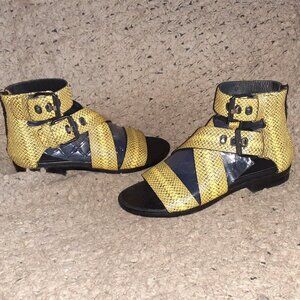 RAG & BONE-Yellow/Black Leather Python Print Sandals-Buckles-Sz 7-Near Mint