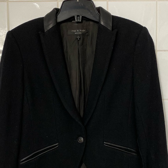 RAG & Bone 💯 Wool Leather Black Blazer Size 2