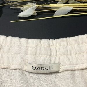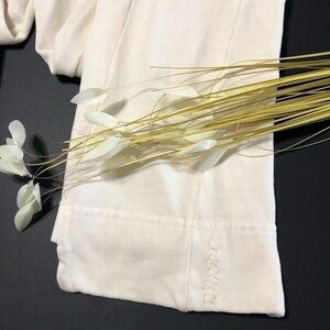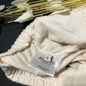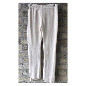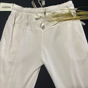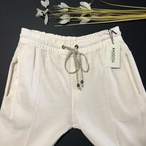 • Elasticized waist with braided drawstring tie with beads • Statement cut-out ankle hem