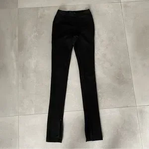 mid waist black leggings with ankle zipper that opens into slits on the inner ankle