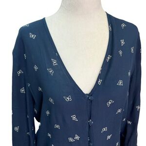 Rails beaux navy white butterflies long sleeve button up blouse top.