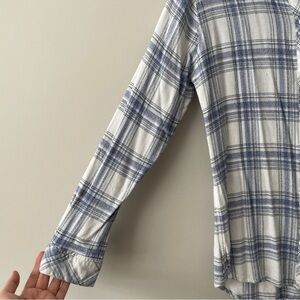 Get your wardrobe upgraded into a fashionable fit in this hunter plaid blue-white button down from Rails. With a size XS, it's the perfect fit for anyone looking for subtle confidence and modern edge with a hint of freshness.