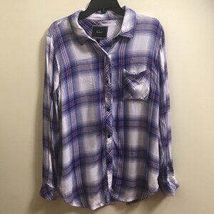 RAILS Hunter Plaid Shirt Button Up Blouse Soft Roomy Top Check Pocket Minimalist