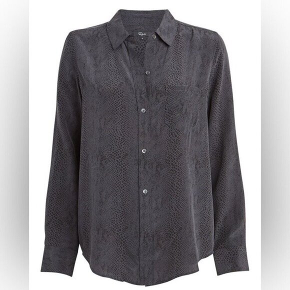 RAILS Kate Cobra Print 100% Silk Top Size XS charcoal black button up
