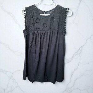 RAIN Women's Everyday Floral Eyelet Yoke Sleeveless Blouse