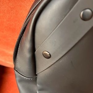 This is a lovely little fully waterproof backpack. Very stylish but doesn't look good on my body. Lightly used; inside looks untouched. Outside there is the smallest amount of wear on one of the buttons (see photos). Otherwise in great shape.