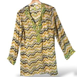 RAJ 100% Silk Heavily Beaded Embellished Swim Suit Coverup MADE IN INDIA Sz XL