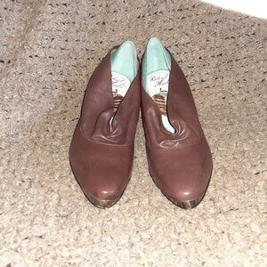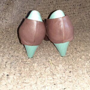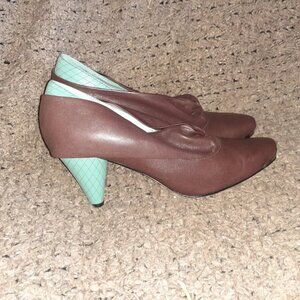 RAKISH HEELS-Rebekah Roy Stylist-Brown/Turquoise Leather-RARE-Size 39-Near Mint