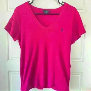 RALPH LAIREN POLO FUSCHIA V NECK TSHIRT SIZE XL