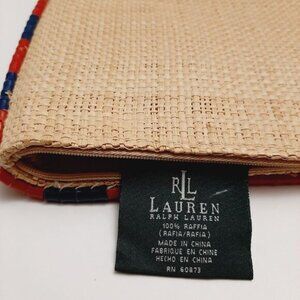 RALPH LAUREN 100% Raffia Envelope Boho Purse Beaded Edge Bag Natural