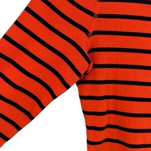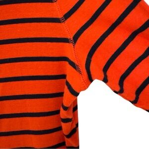 RALPH LAUREN - 3/4 Sleeve, Jersey Stripped Top - Orange/ Navy Blue Medium