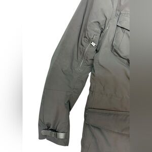 • Features: Utility zipper pockets, adjustable wrist straps, high collar with buckle closure