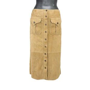RALPH LAUREN Blue Label Suede Tan Beige Luxury Mid-Lenght Skirt sz 38