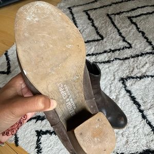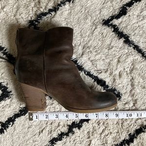 Well loved distressed looking brown leather booties from Ralph Lauren. they were taken to a cobbler a while ago for work on the heel. look at pictures closely to see accurate depiction of product. perfect for the fall.