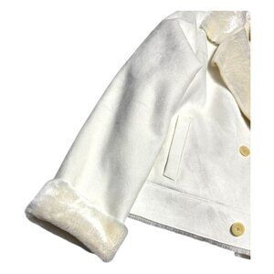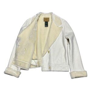 RALPH LAUREN Faux Fur White Cream Business Casual Designer Jacket Womens Large