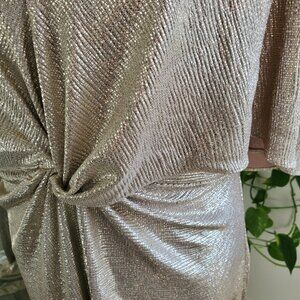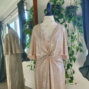 RALPH LAUREN | Gold Champagne Foil Print Jersey Cape Gown (Size 14)