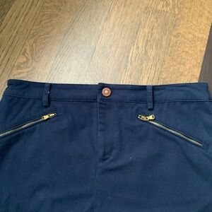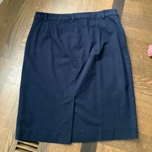 RALPH LAUREN Pencil Skirt Size 8 28” Navy Blue Gold Zipper Pockets Slit in Back
