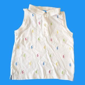 RALPH LAUREN White Sleeveless Polo Shirt Equestrian Theme 6X
