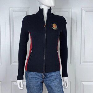 RALPH LAUREN logo crest women's full zip wool cardigan size XS