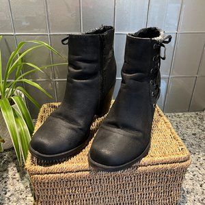 RAMPAGE Ankle Boot Sz 9 1/2M Zip Up w/Faux Side Laces Black 3" Heel