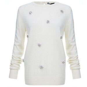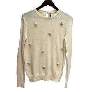 RAOUL Ivory Embellished Merino Wool Bend Sweater Size S