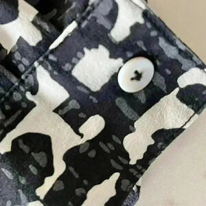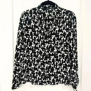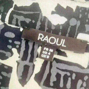 Description: This stylish black and white silk shirt is from RAOUL. It is a US size 4/UK size 8. This was a gift. I only wore it twice because the colours don't suit me.