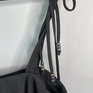 RAPZ Beach Dress Black Tied Bead Spaghetti Strap Lettuce Hem Ruffle Size L