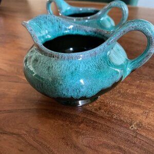 RARE 1960s cream and sugar pottery set from Canuck Pottery Ltd. Green Turquoise
