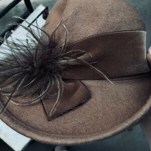 RARE 1970s Boutique by Kates Canada Vintage Felt Hat with Feather Trim Brown
