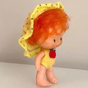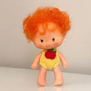 Step back into the original 1979 Berry Patch! This is the highly coveted "Flat Hands" first edition of Apple Dumplin'—the very first baby character introduced in the Kenner line. She is in beautiful vintage condition and comes with her rare, original hard-plastic companion, Tea Time.
