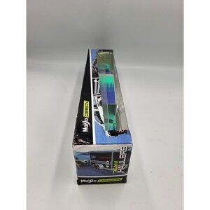 This rare Maisto Design Team Hauler features a 2004 Ford F-150 and a 2015 Ford Mustang GT with FALKEN TIRES. Both vehicles are beautifully designed with intricate details and painted in a stunning blue shade. The scale of the models is 1:64, making them perfect for collectors and enthusiasts alike.