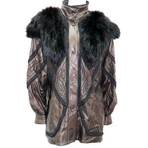 RARE 80s NORMA Canada Detachable FUR Leather Coat OS