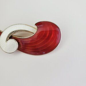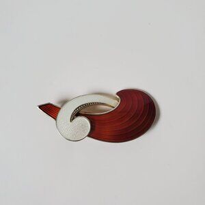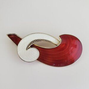A MOST STUNNING MODERNIST ARTISTIC PIN / BROOCH with timeless colour and design | Elegant curvature design | Embossed (Guilloche--see below) enamel | Beautiful contrasting colours of spicey red and white | 925 Sterling Silver | Artist marking on the back