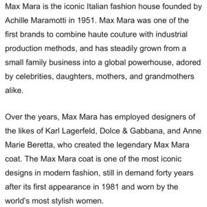 Known for her architectural iconic designs, employed by MaxMara, she was also awarded Ordre des Arts et des Lettres.