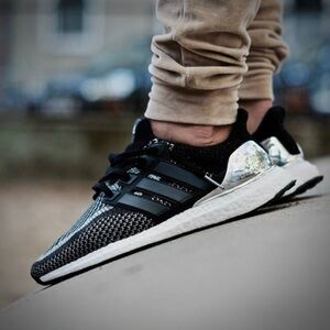 ADIDAS® ULTRA BOOST™ LTD SILVER MEDAL :: Take top honors in the comfy kicks competition while training, or just kick around town in your adidas Ultra Boost LTD Silver Medal. Let thousands of tiny boost™ energy capsules cushion you with unmatched energy return on a midsole made of 100% boost™ material. Lock in your feet with the Primeknit upper, and feel plush comfort as it stretches and holds flawlessly. Your Silver Medal Ultra Boost sports an eye-catching silver heel counter and gives long-lasting grip thanks to the Continental® rubber outsole.