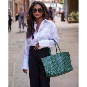 RARE Authentic Goyard Goyardine Saint Louis PM Green Shoulder Tote Bag & Pouch