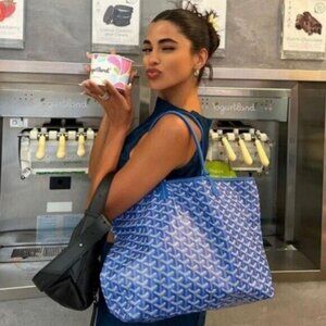 RARE Authentic Goyard Saint Louis PM Blue Shoulder Tote Bag & Pouch