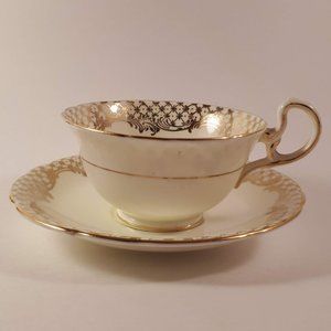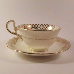 Pretty Pretty Aynsley in pale yellow/Cream colored fine bone china wide mouthed teacup and saucer for your collection.