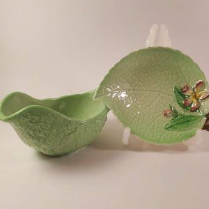 Description: Rare pretty green leaf dish and green gravy boat for your collection.
