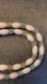 Crown Trifari double-strand necklace featuring white Lucite beads accented with small, light blue enamel flowers on gold-tone finished sections connecting the beads. The design is consistent with pieces from the 1950s, a period during which Trifari produced similar jewelry. These necklaces often feature Lucite cabochons and enamel detailing, reflecting the popular styles of the mid-20th century. The necklace is in excellent condition, showcasing the craftsmanship and aesthetic of vintage Trifari jewelry.