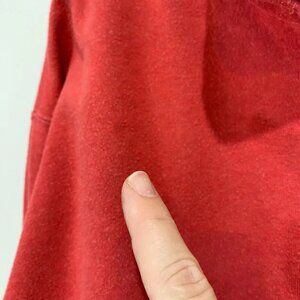 This sweatshirt is well-loved, well worn, and lived in (a dark spot near the shoulder, pilling, general wear overall).