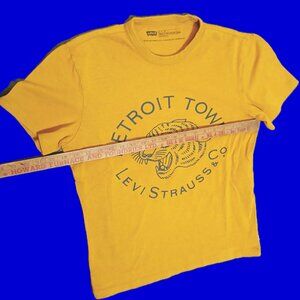 This is a rarely seen vintage graphic style Levi's t-shirt, mustard colour, showing 'Detroit Town' and the funky Detroit Tigers/Tiger graphic with Levi Strauss branding.