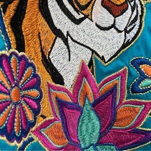 Stunning!! Rare Disney Parks Princess Jasmine Aladdin Satiny Bomber (almost cropped) Jacket with intricate Embroidered lion and florals that are absolutely gorgeous! This is a very nice and unique jacket.