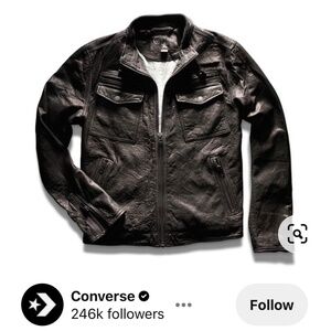 Hello selling a rare Converse double pocket calfskin leather jacket. Was purchased in 2012 from converse.com (retail price $600USD). The jacket is lined with very soft grey heather cotton. Worn once then has been in a storage unit ever since. Rare piece kept in excellent condition. Size Medium.