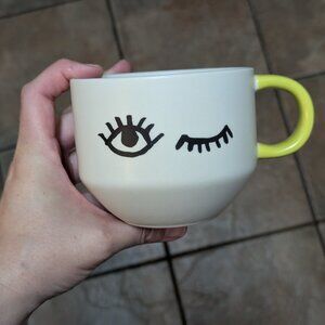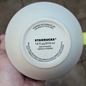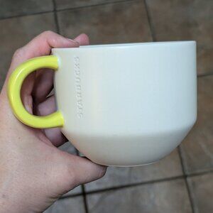 - a limited edition Starbucks Great Gift The wink coffee mug, 14 fl oz in an off-white satin gloss finish with black pattern and yellow handle. With very small marks of age and use