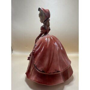 Embrace the charm of the Southern Belle series with this rare Josef Originals figurine. Standing at a petite 6 inches, the deep pink porcelain piece captures the essence of the 1950s style, featuring Amber, a character from the beloved Southern Bell family. She's elegantly dressed and holds an umbrella, adding a touch of vintage sophistication to any collection.