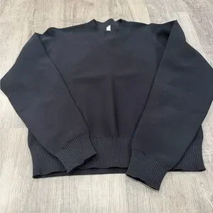 Classic black crew neck sweater. Ribbed cuffs and hem. Comfortable and stylish.