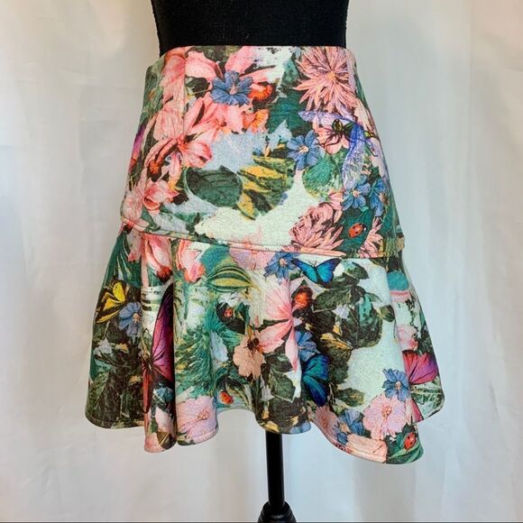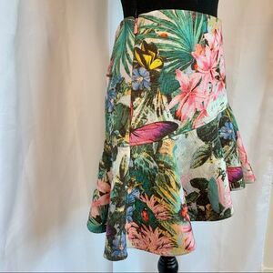 RARE MISS SIXTY floral tropical butterfly asymmetrical ruffle hem miniskirt Sz S